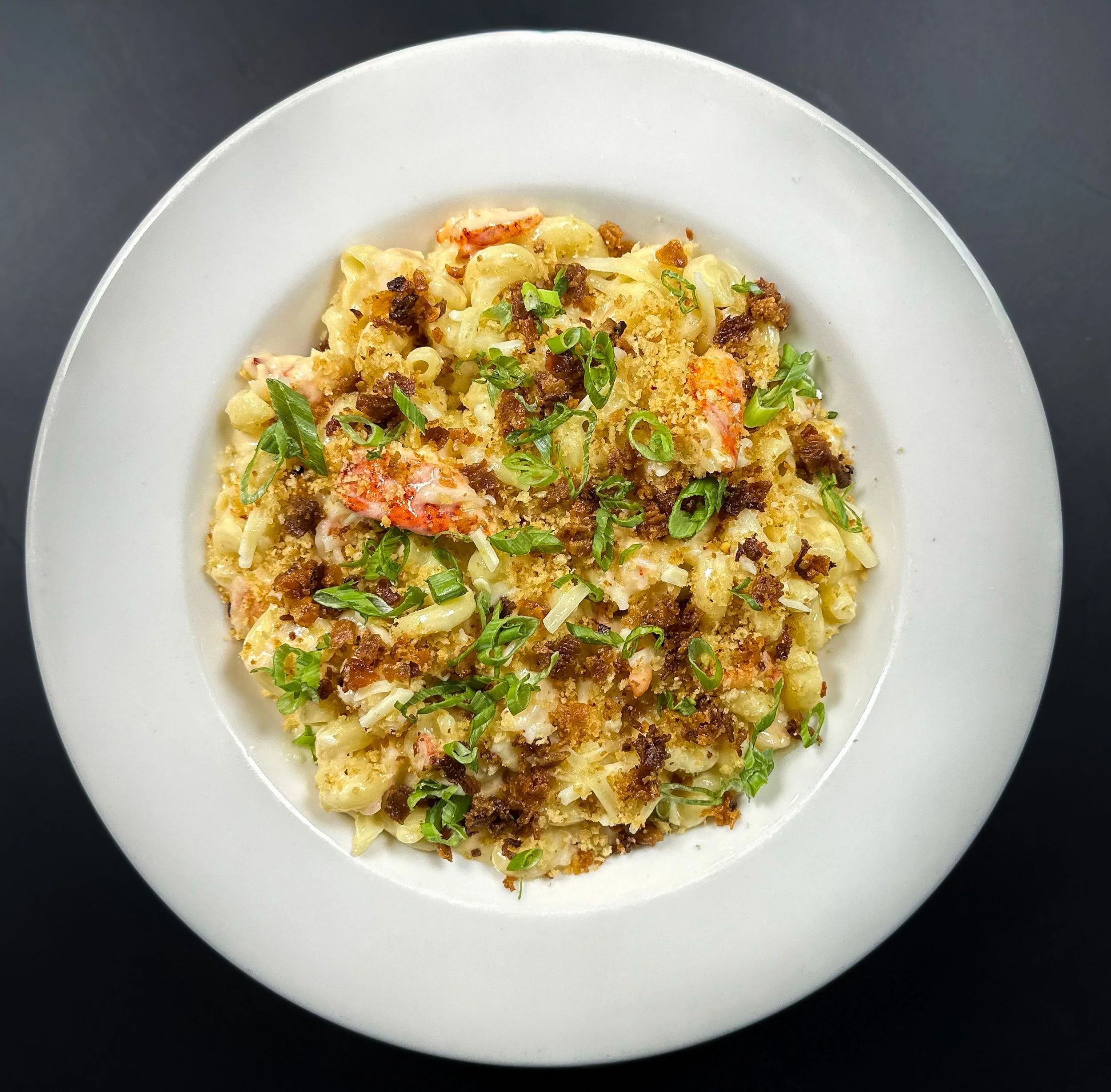 white cheddar cheese sauce, smoked gouda, bacon, panko, green onion