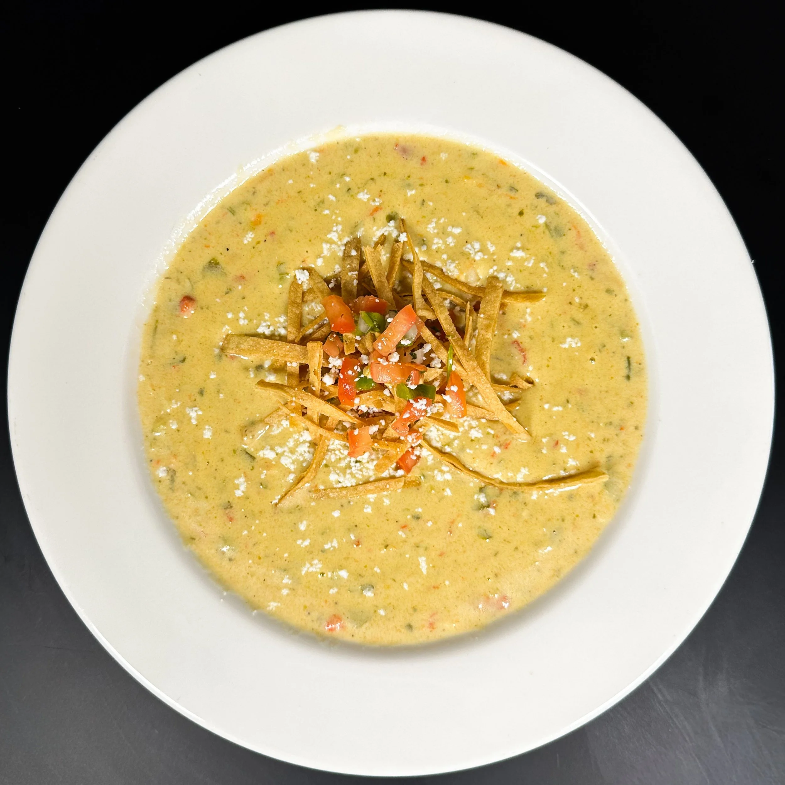 Roasted jalapeño & poblano, pico, cotija, crispy tortilla strips
