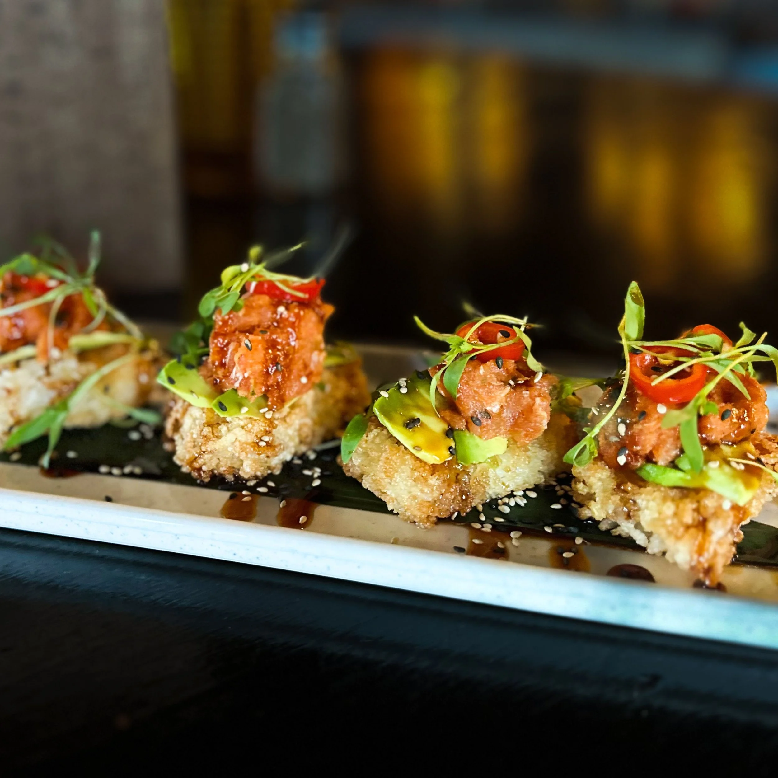 Tempura fried, surimi crab & lobster, spicy tuna, habanero cream cheese, key lime aioli, eel sauce, spicy aioli, green onion