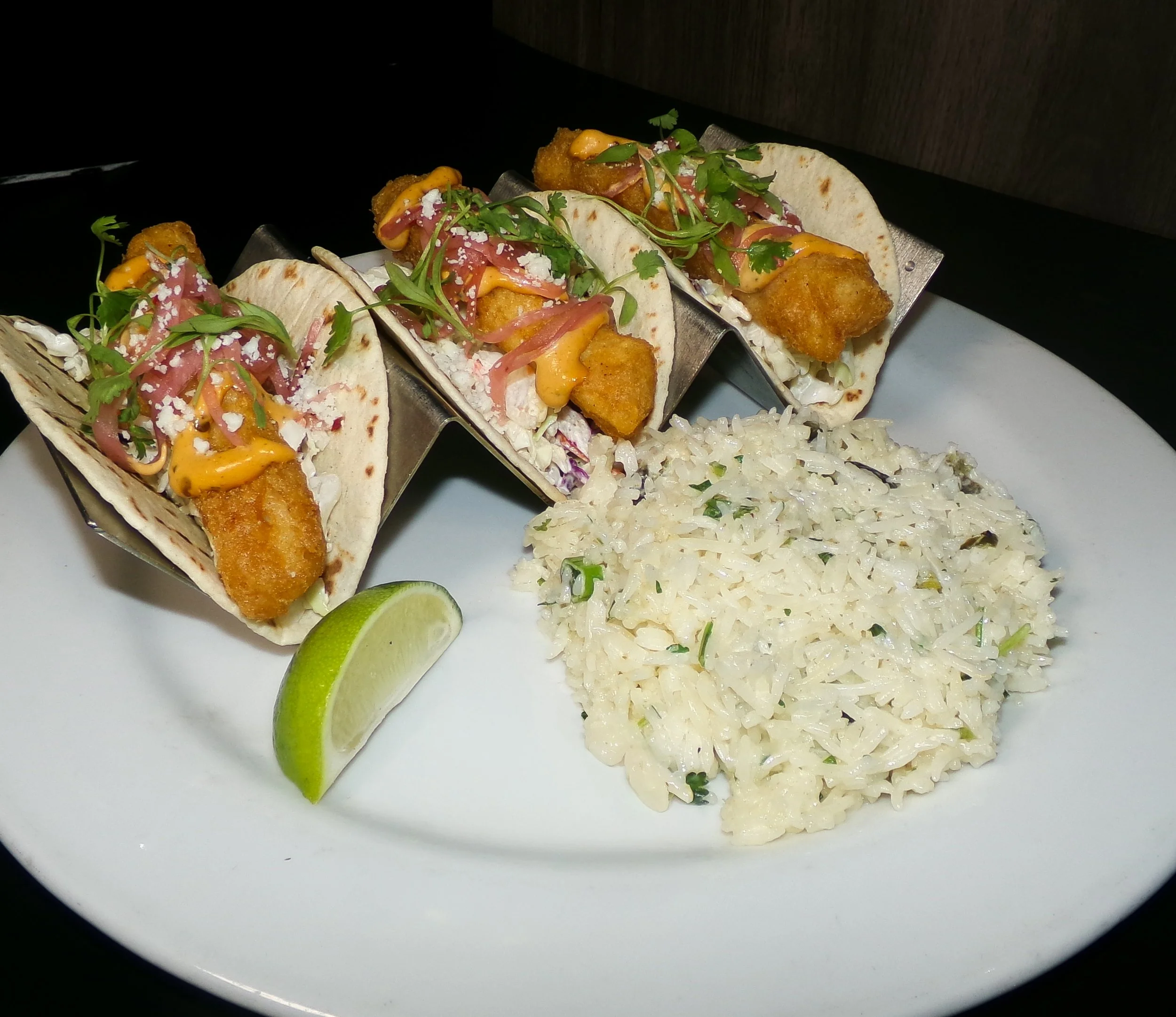 Tempura cod, key lime slaw, chipotle aioli, pickled onion, cotija